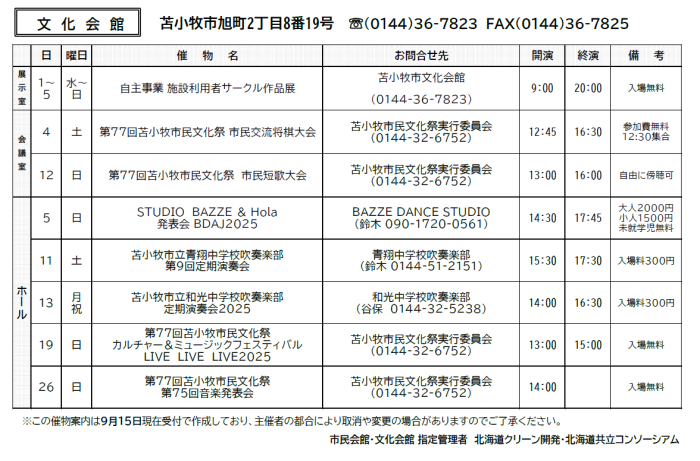 Copyright (C) 2012 苫小牧市文化会館 All rights Reserve.