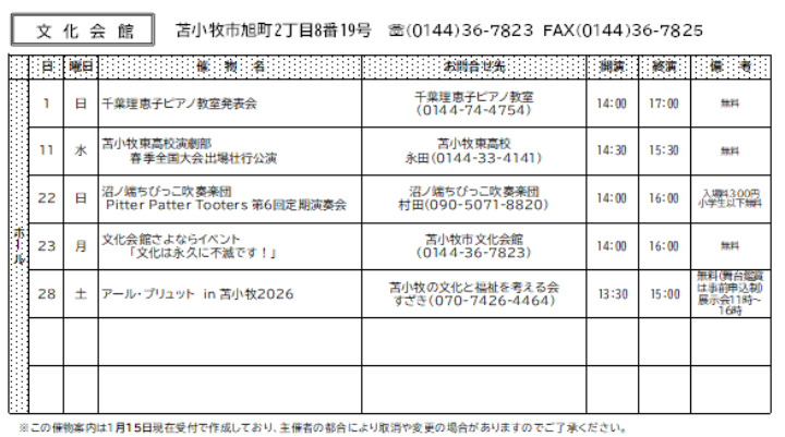 Copyright (C) 2012 苫小牧市文化会館 All rights Reserve.